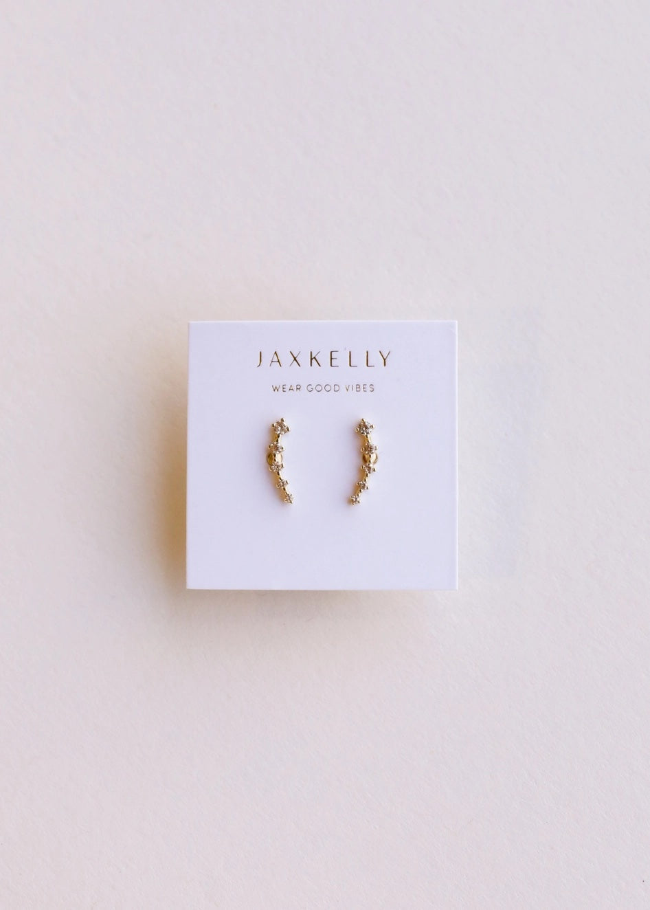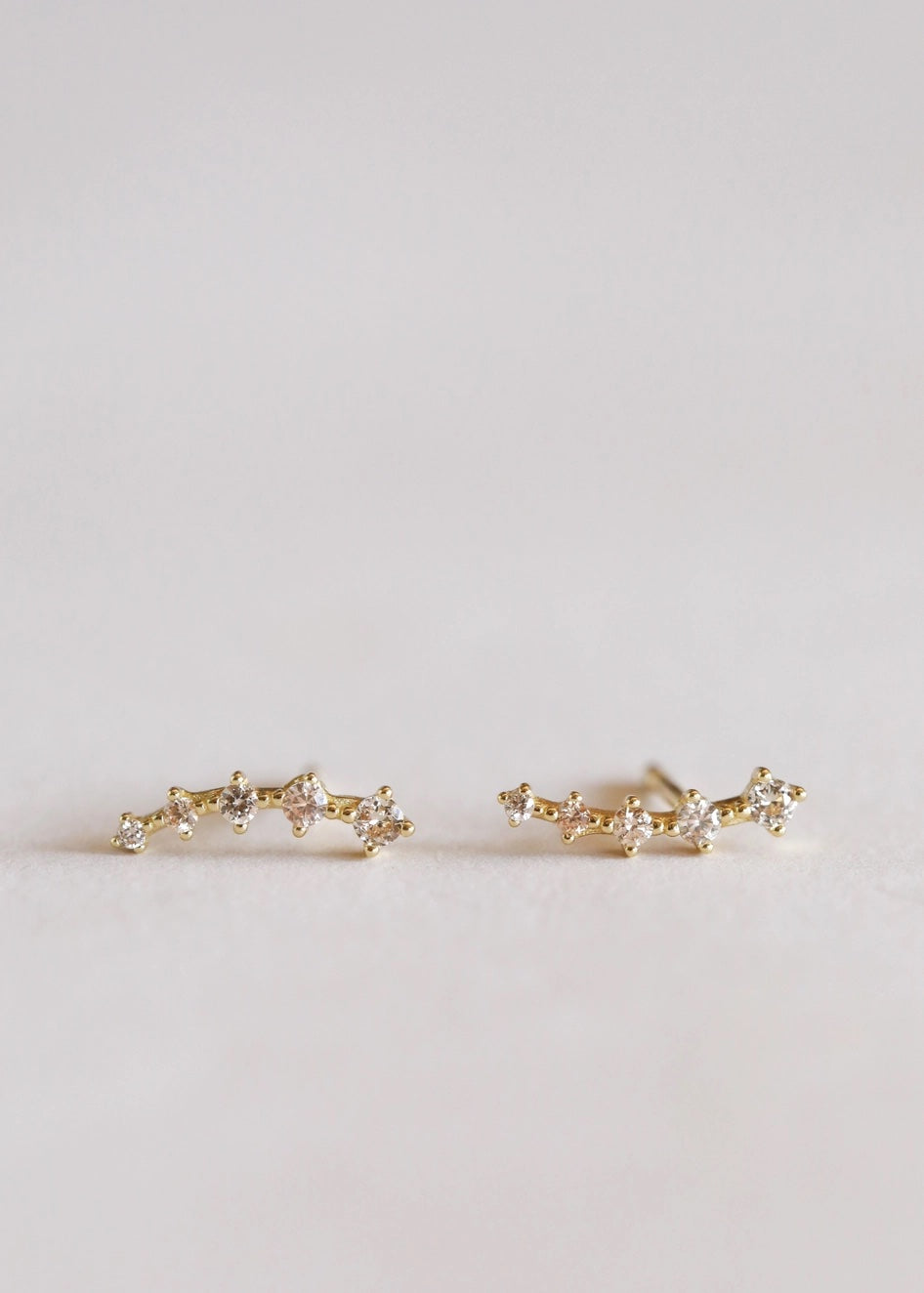 These five-stone cascading crawlers feature Champagne cubic zirconia set in 18k gold-plated sterling silver. Carded on crisp white squares with gold-foiled accents.
