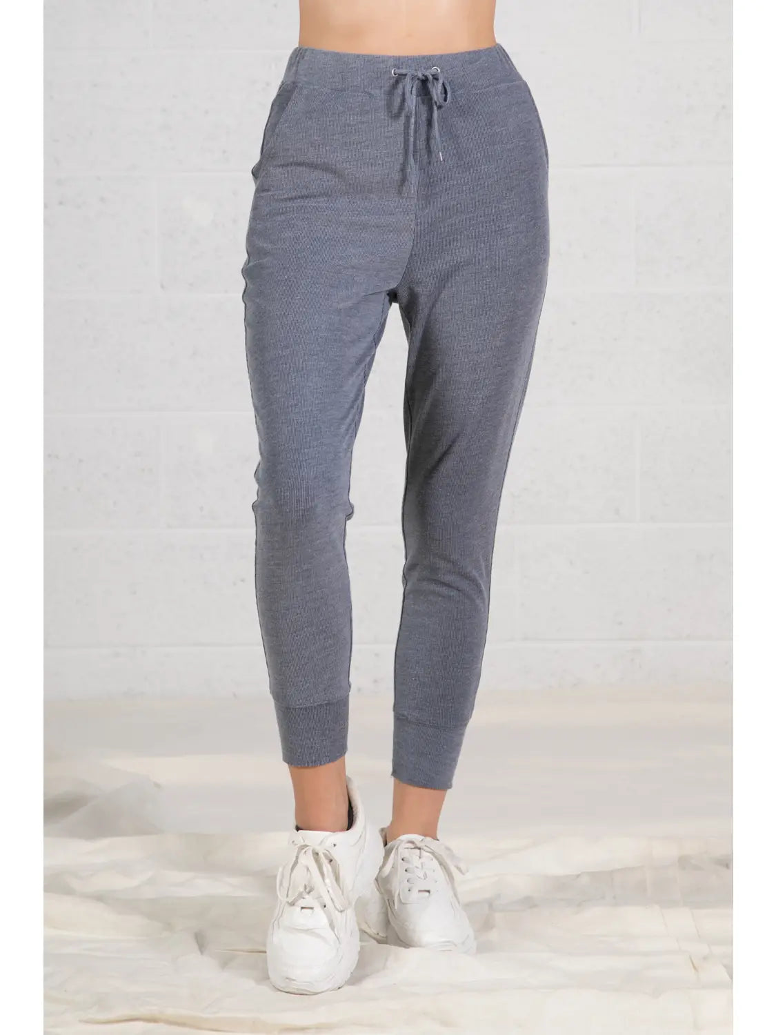 A casual jogger in a denim finish. Featuring a slant pocket and ribbed trim these joggers are comfortable and look great! Pair with your favorite t-shirt and a pair of sneakers for a polished and comfortable look.