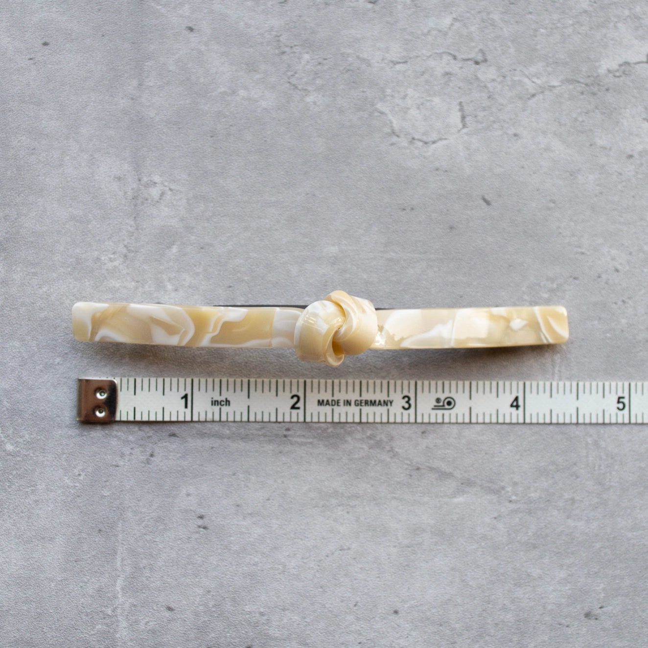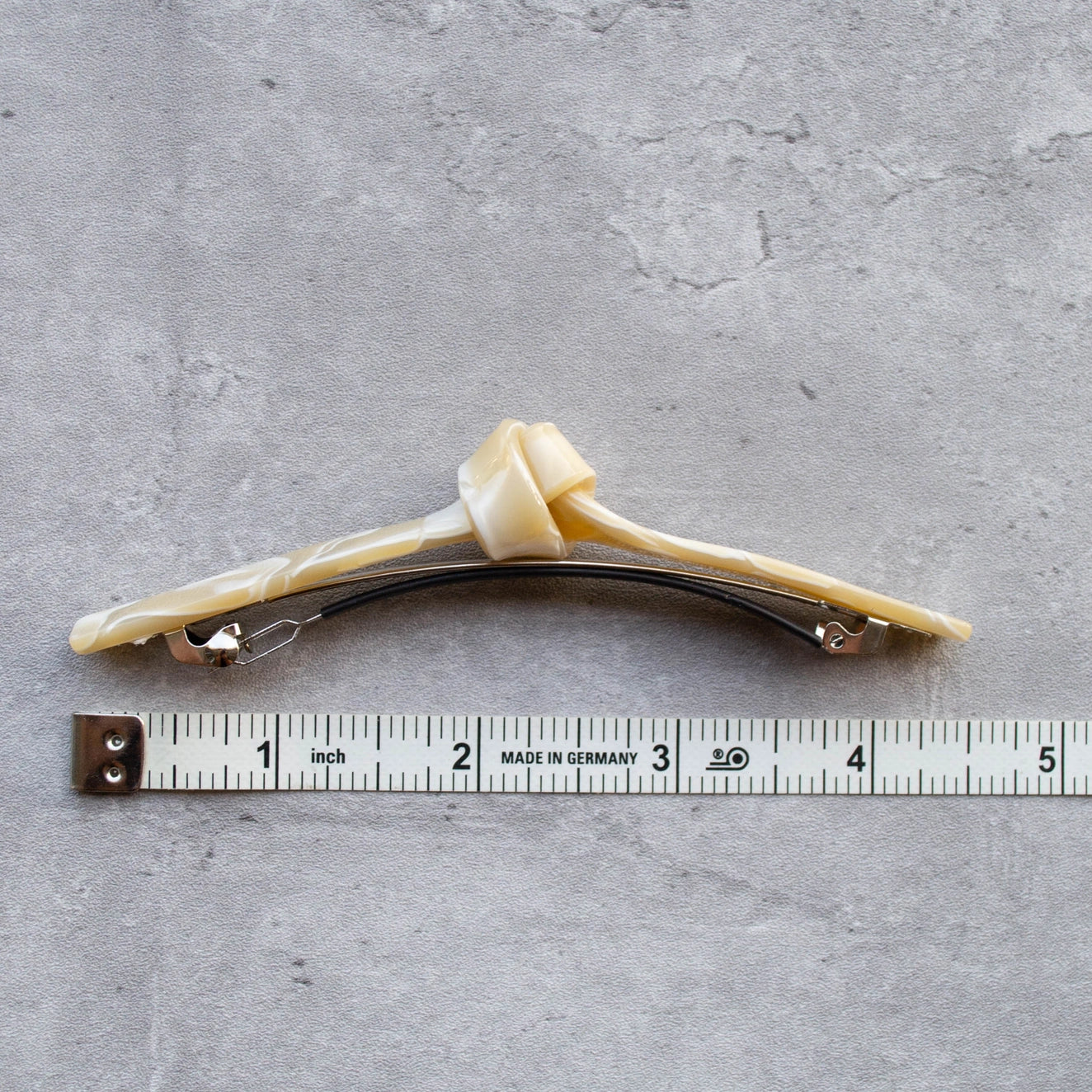 Measuring in at 4.5 inches, this hair barrette is crafted from 100% Cellulose Biodegradable Acetate – a plant-based plastic that's simpler and gentler than conventional petroleum-based plastics. Not only is it far more flexible and durable, but it's also nontoxic, nonirritant and biodegradable – so you can feel good about fashion at the same time!