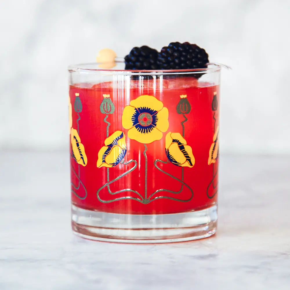 When it comes to design, we adore Art Nouveau. We also love flowers, especially poppies. We decided to combine these two elements and created our Golden Poppy Rocks glass. Yes, California Dreamin' is always at hand with this one. Our Golden Poppy Rocks holds 11 oz. and measures 3 1/2” tall by 3 1/4” wide. Pairs perfectly with our other poppy glassware designs!