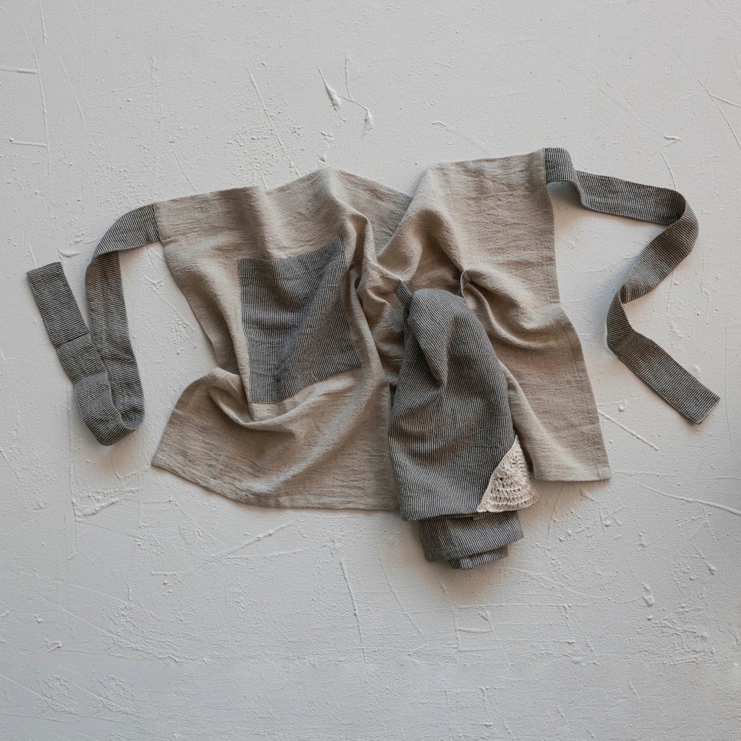 This elegant set includes a linen blend half apron and tea towel with delicate crochet lace detailing. The natural and black color scheme adds a touch of sophistication to any kitchen. Stay clean and stylish while cooking with this luxurious set.
