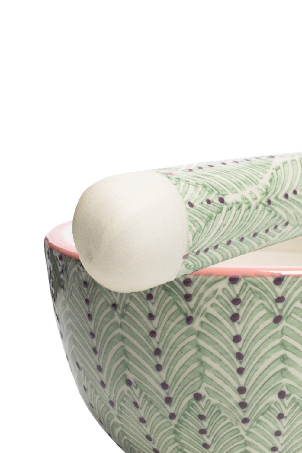 With this set made of hand-stamped stoneware, there are fresh patterns in the kitchen. The mortar with a matching handmade pestle will help you grind and prepare pestos, spices and nuts. You can also see its handmade charm in the pestle.