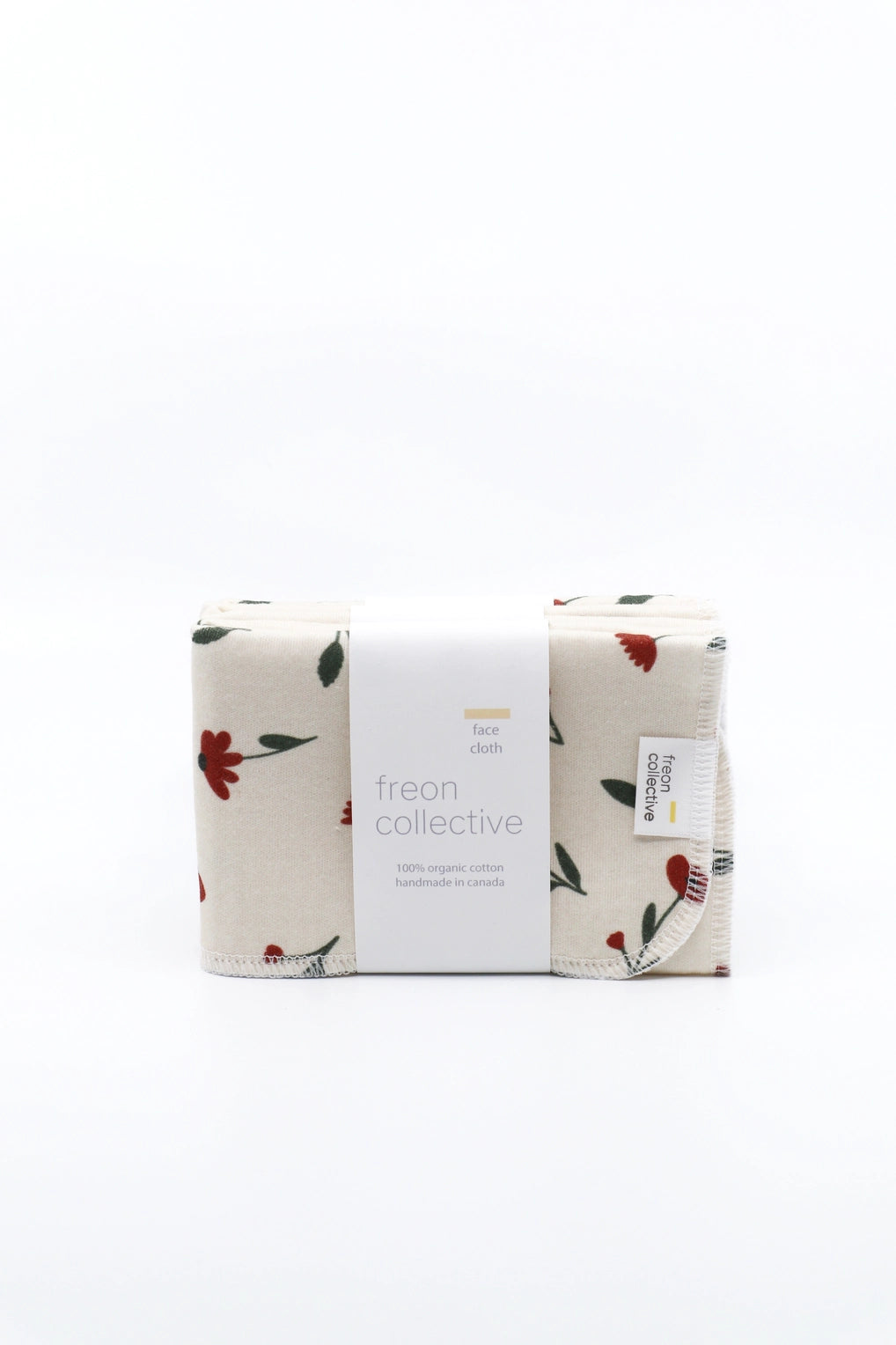 Each face cloth measures 11"x11". Wash on the gentle cycle with cold water and and lay flat to dry.
