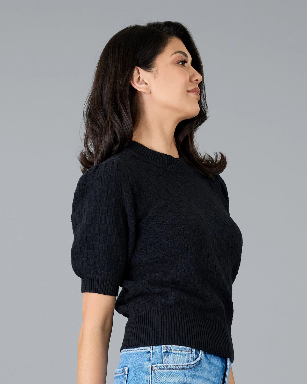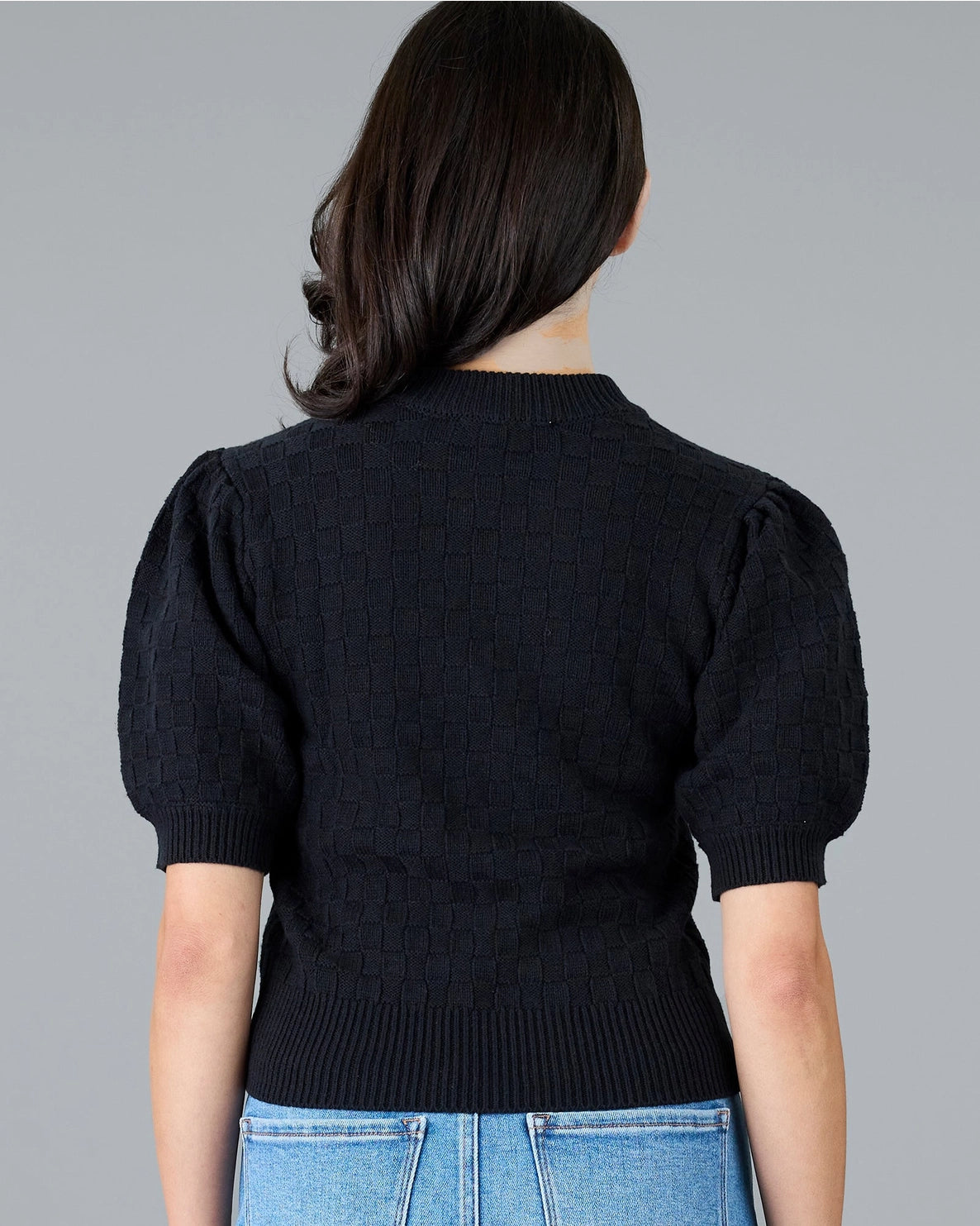 Indulge in luxurious style with our Puff Sleeve Pullover. The checkerboard texture design adds a touch of sophistication, elevating any ensemble. Slip into this elegant and exclusive piece and feel like a work of art.