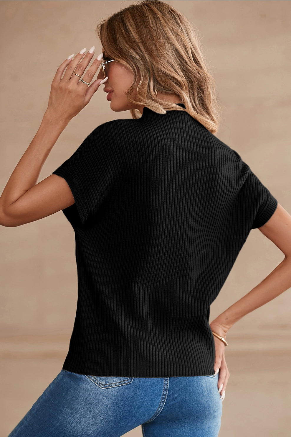 Indulge in effortless luxury with our Ribbed Knit Short Sleeve Sweater. The fine ribbed texture exudes sophistication, while the convenient patched pocket adds practicality. Enjoy a versatile fit and choose from a range of colors to elevate your daily looks. Experience the exclusive comfort of our wholesale sweater vests.