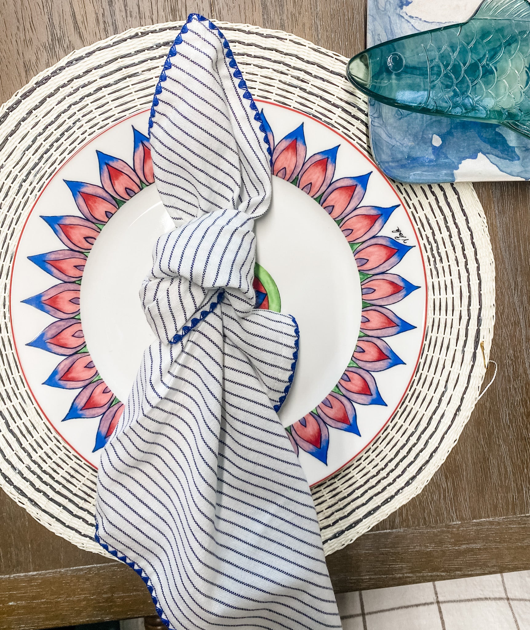 a bold blue striped cloth napkin that is both beautiful and functional. An eco friendly alternative to paper towel or paper napkins.