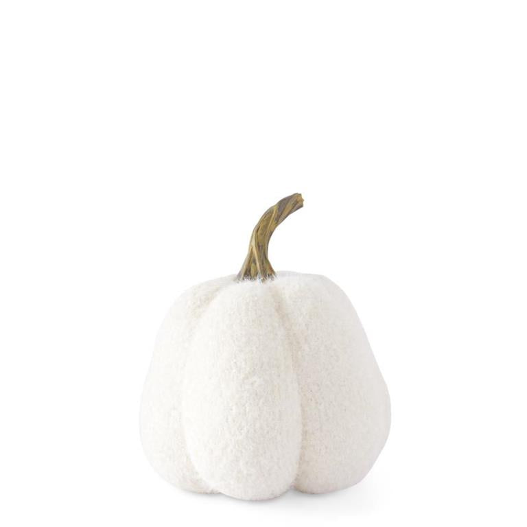 These White Knit Gourds are perfect for your decorating needs. Its fuzzy white knit finish gives it an extra cozy and inviting look, while the resin stem adds a touch of classic charm. Give your home the perfect cozy autumnal look.